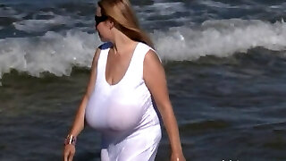 Milf with huge boobs fucking in the beach
