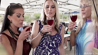 Two slutty Cougars have fun with the Big Black Cock while their bikinis barely cover their nipples