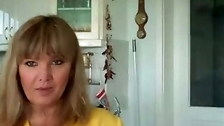 Mature blonde housewife flashing her wooly old pussy on cam