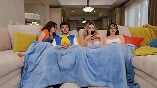 Nerdy brunette in glasses Michele James is testing humungous black dick sticking out of the wall