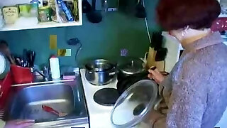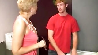 Full breasted blond grandmother deep throats staff cock of her kinky man