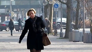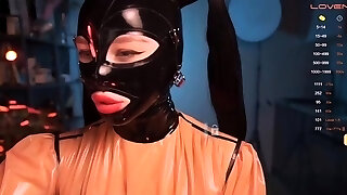 Cum on Fetish blonde in latex and nylon stocking and gas mask