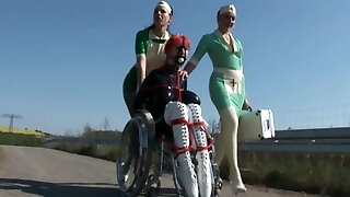 The poor patient suffers from a spandex allergy, also her can be helped in the hospital by the two rubber nurses