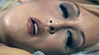 Innocent blond teen gets strapped up for an extremely rough face ravaging domination sesh with ass eating and degrading slobber