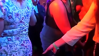 Hotties are sucking stripper's cock in a club getting fat cumshots