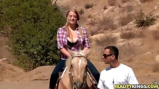 Ridiculously busty Sierra Skye rails the horse