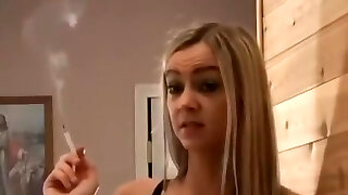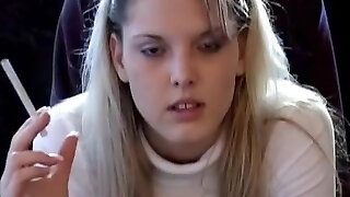 Perfect blonde teen smoking on cam
