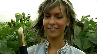 Wondrous cute teen with small udders and pigtails bj's black dildo in the woods