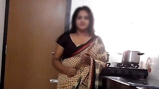 Indian Stepmom Disha Kitchen Striptease & Torn Up by Stepson