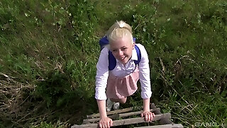 Petite nude pussy in short shorts. Fabulous red poon. Hidden penetration in short cut-offs. Sweet pussy and ass.
