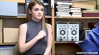 Pretty Slim Teen Shoplifter Fellates & Rides the Security Guy's Man Rod Like a Pro To Deserve Freedom