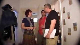 Horny blonde cougar with a big, lush ass is cuckolding her husband with two black guys 23:46