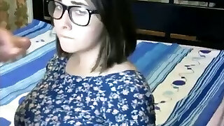Petite nerdy and pale blondie sucks and rides a fat strenuous BBC for ejaculation