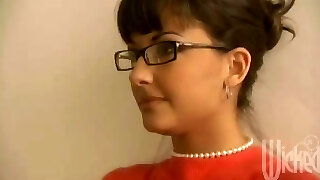 Asian hotty with glasses looks like a geek but fucks like a
