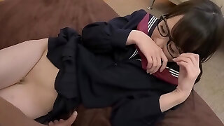Alluring Japanese teen in glasses gets super hot tit fucking