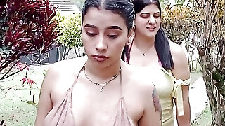 Horny lezzies with big ass take advantage of home alone to eat their poons in the pool - Porn in Spanish