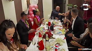and nubile Japanese damsels give way to mighty internal ejaculation elation in this JAV soiree scene, where hardcore group fuckfest and threesomes are the norm