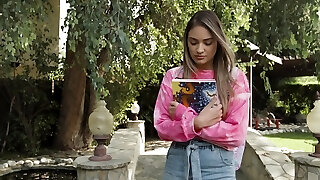 Lustful teen Honour May masturbates her cunt in thew hay