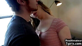 Cute Young Tranny Making Out With A Fat Guy