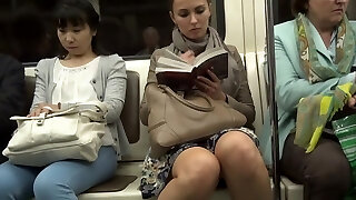 Fat chick on the subway sits with her legs open
